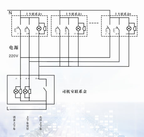 性能特點(diǎn):1.按動(dòng)聯(lián)系盒按鈕:聯(lián)系盒“請(qǐng)求上下車”指示燈亮、蜂鳴器響(時(shí)間與按鈕動(dòng)作同步);司機(jī)室報(bào)警蜂鳴器(或語(yǔ)言)同步響,司機(jī)室主機(jī)顯示文本提示“有人請(qǐng)求上下車”;該操作如延時(shí)60秒無(wú)下步動(dòng)作響應(yīng),自動(dòng)復(fù)位清除。2.司機(jī)如同意登機(jī),按動(dòng)應(yīng)答按鈕:聯(lián)系盒“允許上下車”指示燈亮,蜂鳴器長(zhǎng)響;司機(jī)室主機(jī)顯示文本提示“有人正在上下車”(或語(yǔ)音);同步切斷大車行走控制回路。3.上下車完成后,按動(dòng)聯(lián)系盒按鈕:聯(lián)系盒“允許上下車”指示燈滅、蜂鳴器停,“上下車完成”指示燈亮;司機(jī)報(bào)警蜂鳴器響(或語(yǔ)音),司機(jī)室主機(jī)顯示文本提示“上下車完成”。4.按動(dòng)司機(jī)就答按鈕:聯(lián)系盒“上下車完成”指示燈滅;司機(jī)室主機(jī)聲光消;同步恢復(fù)大車行走控制回路。5.司機(jī)同意上車操作后如延時(shí)120秒后,如無(wú)下一步操作;司機(jī)室主機(jī)報(bào)警,提示“上下車超時(shí),請(qǐng)司機(jī)確認(rèn)”,按動(dòng)司機(jī)室應(yīng)答按鈕,解除所有操作,復(fù)位。